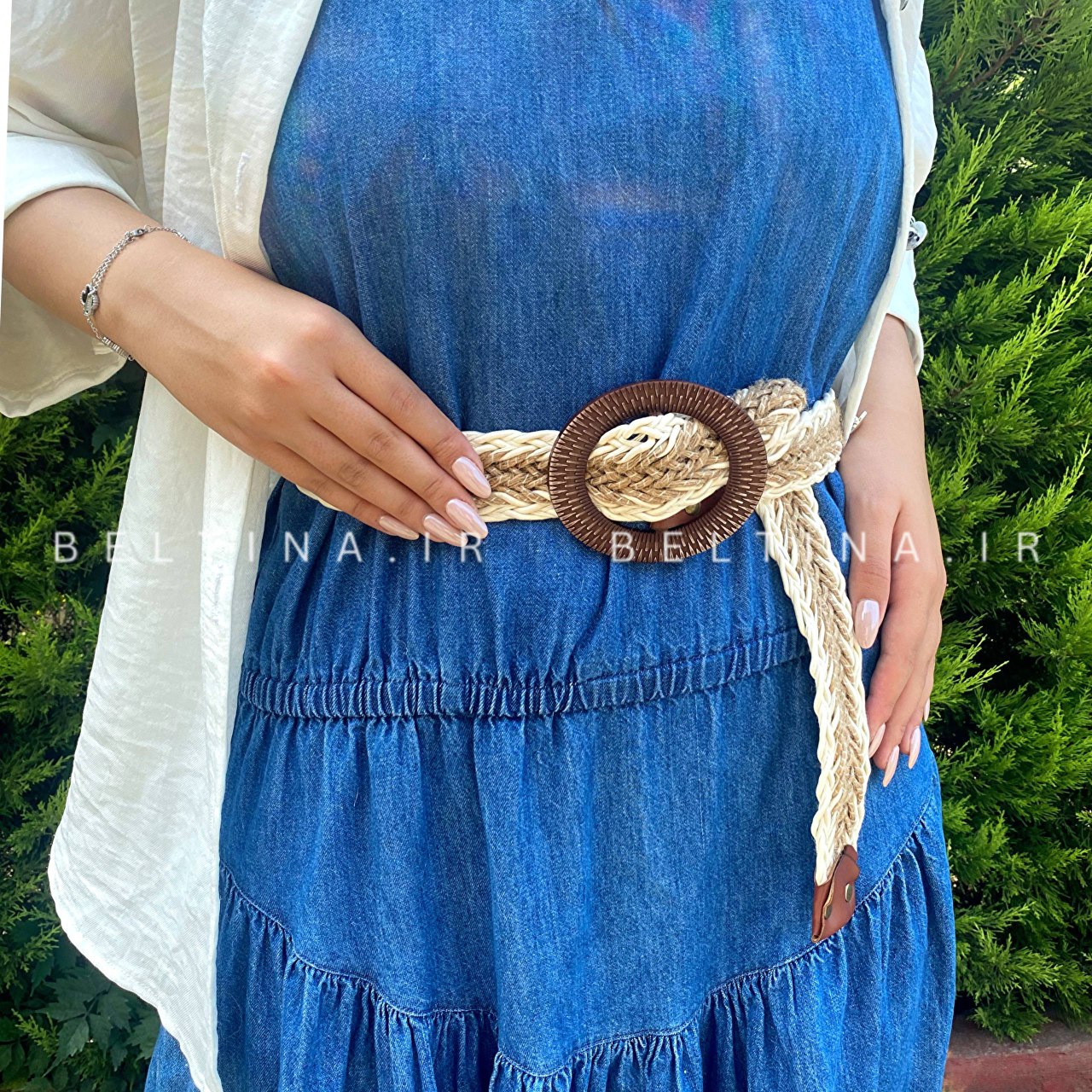 کمربند زنانه کنفی ۵ سانت سگک بیضی